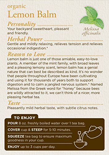 Traditional Medicinals Tea, Organic Lemon Balm, Calms Nerves & Supports Digestion, 16 Tea Bags